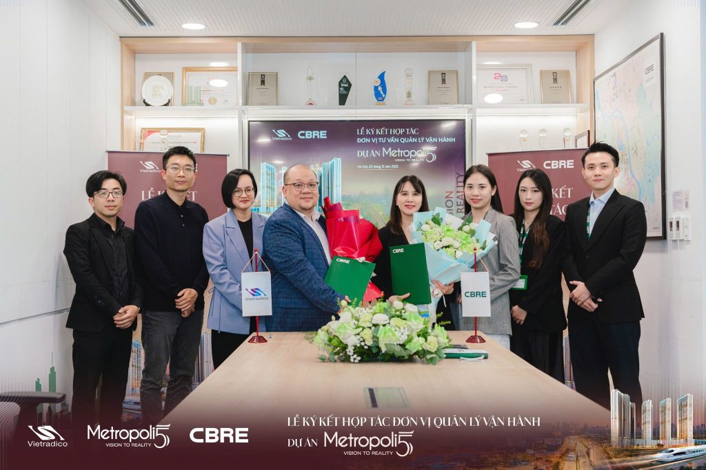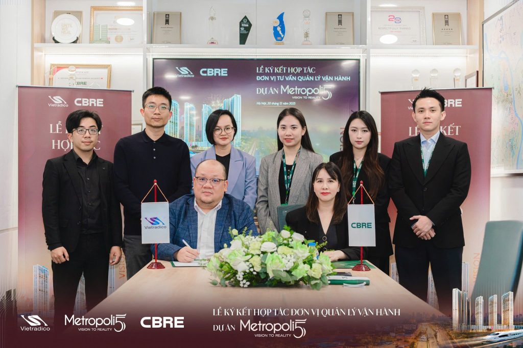 Ngày 20/12/2025, Vietradico – Chủ đầu tư dự án – chính thức công bố hợp tác cùng CBRE Việt Nam, thương hiệu tư vấn và quản lý bất động sản hàng đầu thế giới, trong vai trò tư vấn quản lý vận hành dự án căn hộ cao cấp Metropoli5 Nam An Khánh.